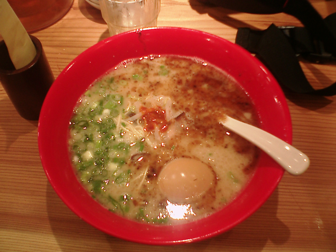 とりあえず、赤丸新味と白丸元味というのがあったのですが、赤丸のほうを煮卵と注文。